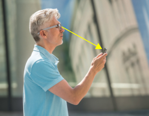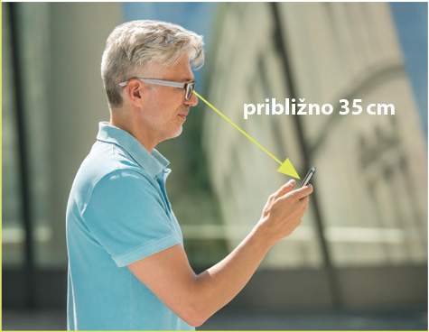 Zona za blizinu nije kompatibilna sa kraćom udaljenosti na kojoj se koriste digitalni uređaji. Rezultat: neprirodan položaj glave i tela kako bi se digitalni uređaj postavio u zonu oštrog i bistrog vida. |