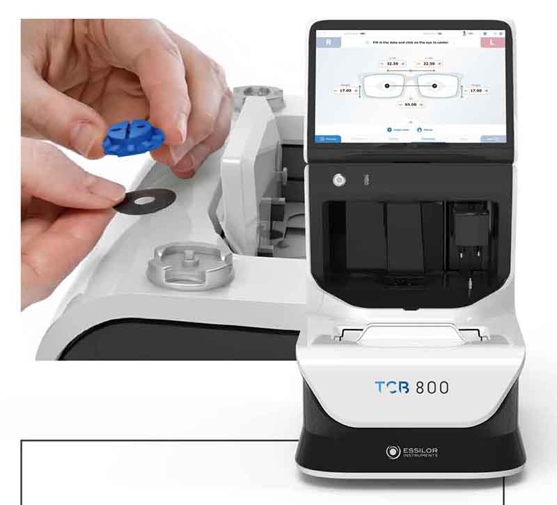 TCB™ 800 automatski usklađuje putanju baze okvira i prilagođava podatke o centriranju na osnovu 3D parametara okvira obezbeđujući dobro pristajanje. Kompenzuje sva decentriranja izazvana zakrivljenošću okvira. Uređaj za pozicioniranje podloga pomaže rukovaocima da pravilno postave podloge na mesto prilikom brušenja. Uključuje režim za blokiranje optičkog centra, što je korisno za sprečavanje okretanja ose kod sočiva sa visokim stepenom miopije ili prizmatičnih sočiva, kao i uređaj za pozicioniranje podloge koji pomaže korisnicima da pravilno pozicioniraju podlogu kod brušenja.