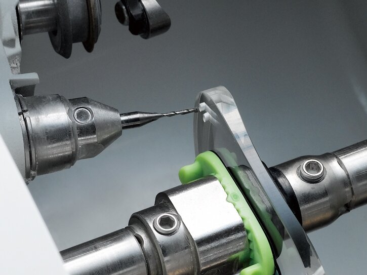 Sistem koji pokreće bušilicu takođe izvodi visokokvalitetno bezbedno pravljenje zaštitne fazete i urezivanje na svim vrstama sočiva.