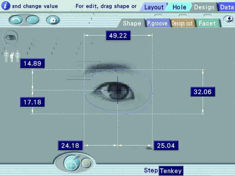 Prilagođeni oblici lako se stvaraju pomoću naprednog uređivača oblika. Posebna funkcija "fiksne oblasti" omogućava operateru da promeni određeni deo sočiva dok ostale periferne oblasti ostaju nepromenjene.