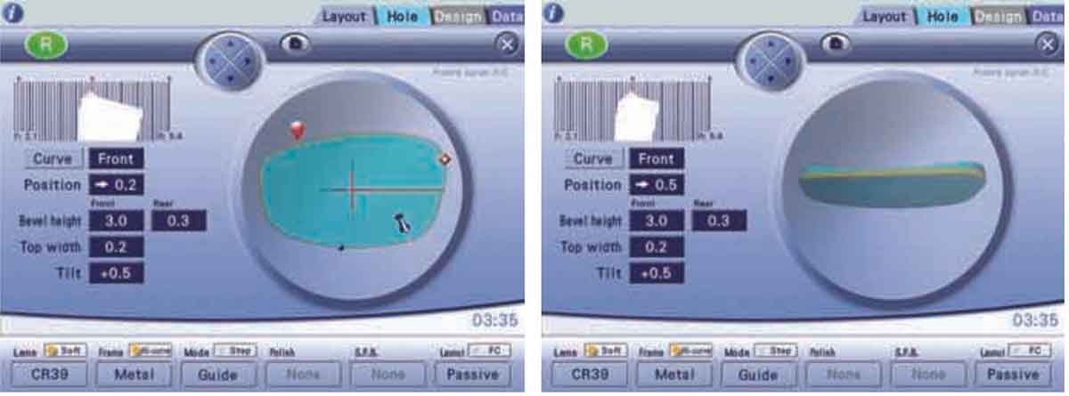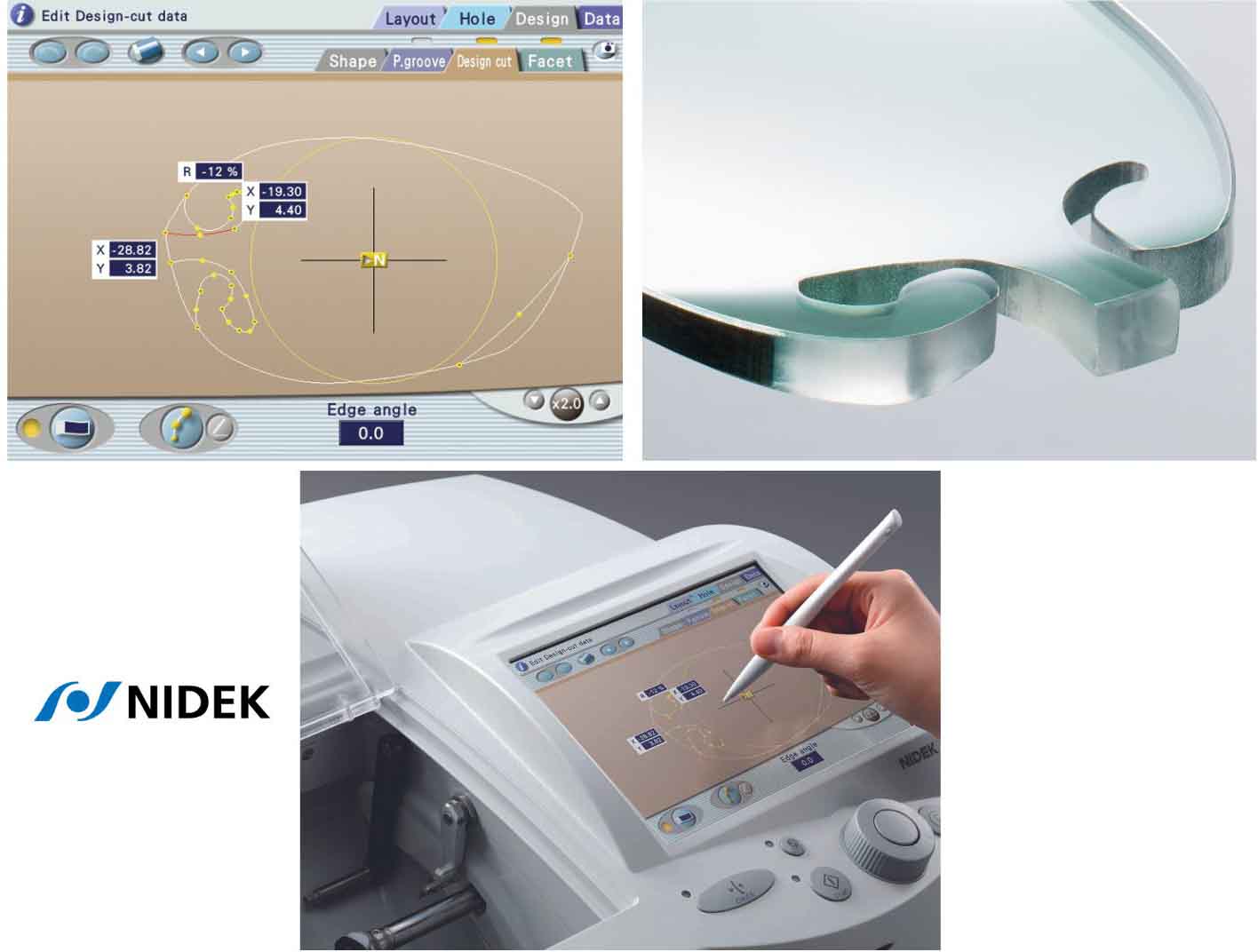 ME-1500 stvara visoko modnu fazetu na ivici sočiva postavljanjem položaja i širine. Završni dizajn prednje i zadnje fazete može se unapred pregledati na ekranu radi precizne obrade.