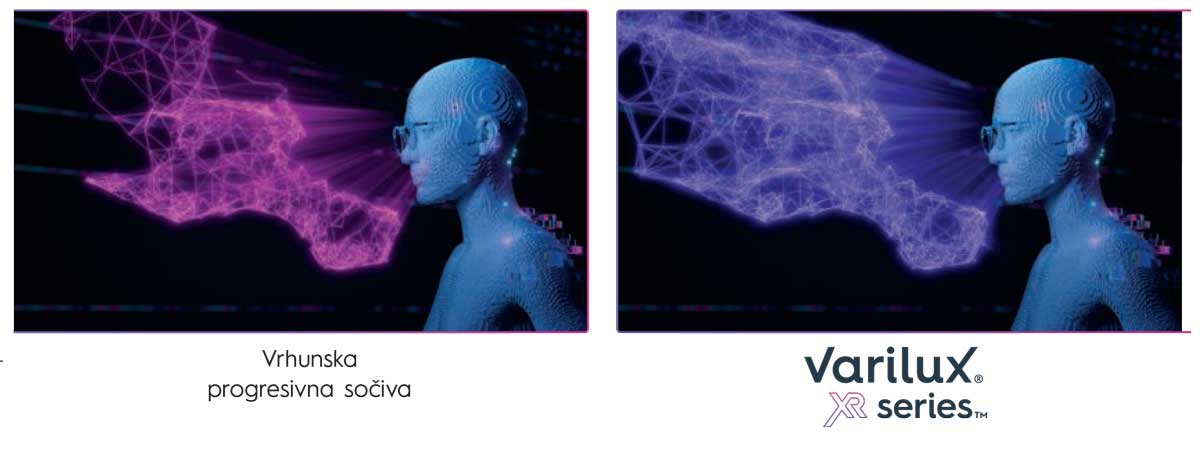 Varilux® XR su progresivna sočiva koja znaju kako se naše oči stvarno pokreću. Uz pomoć bihevioralne veštačke inteligencije, Varilux® XR series™ sočiva mogu predvideti naš individualni način gledanja, kako bi nam mogla pružiti trenutnu oštrinu čak i u pokretu te besprekoran prelaz sa gledanja na blizinu na gledanje na daljinu.