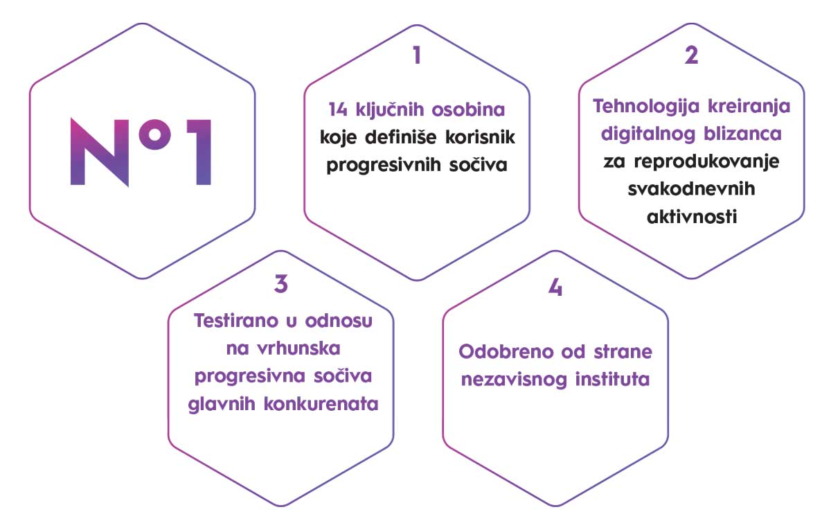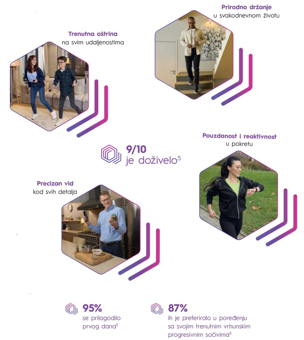 - To su sveukupno najbolja progresivna sočiva12, koja nude trenutnu oštrinu na svim udaljenostima čak i u pokretu, prilagođavanje od prvog dana5 i prirodno kretanje očiju.