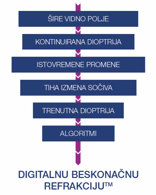 Glatki i trenutni prelaz između višestrukih jačina sočiva uz eliminaciju neželjenih podražaja i kontrolu akomodacije.